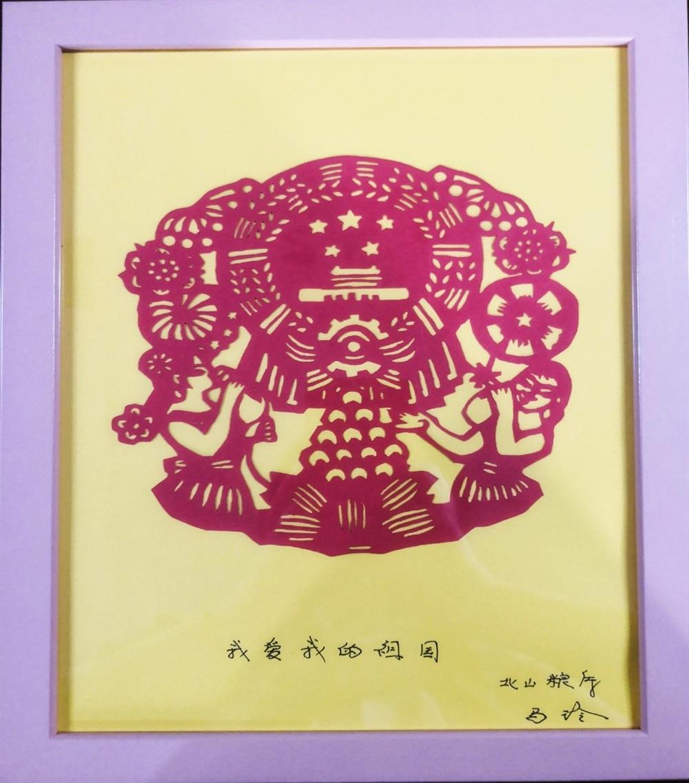 经评审团现场评选,北山粮库马玲的作品《我爱我的祖国》荣获一等奖,作品主题突出、创作精细,国徽形象精细细致,人物动作生动形象,作者用流畅细腻的雕刻手艺及剪裁大气的弧度,表达了对党和祖国的满腔热情和美好祝愿,抒发了爱国主义情怀。
